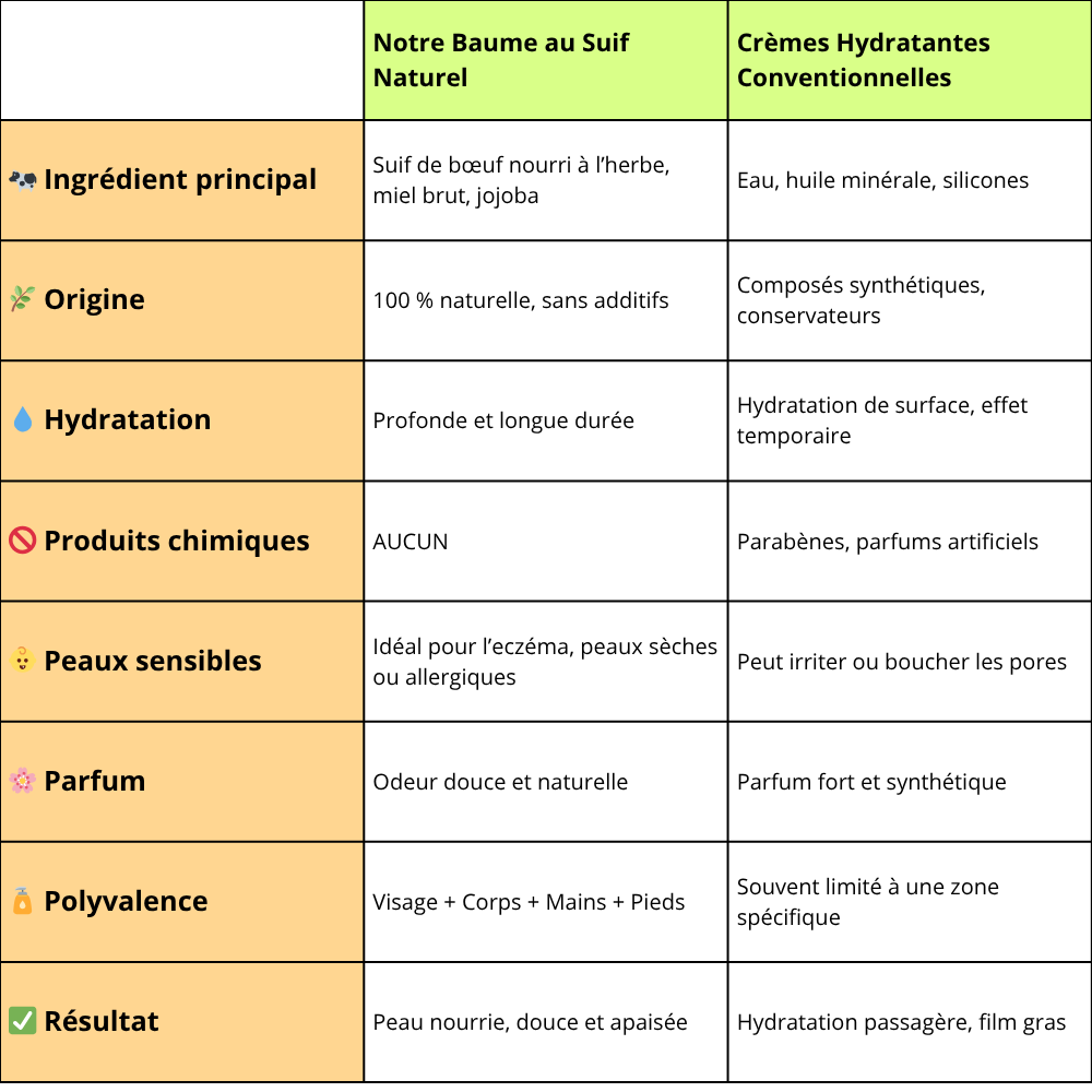 🔍 Pourquoi choisir notre baume au suif plutôt qu'une crème ordinaire ?